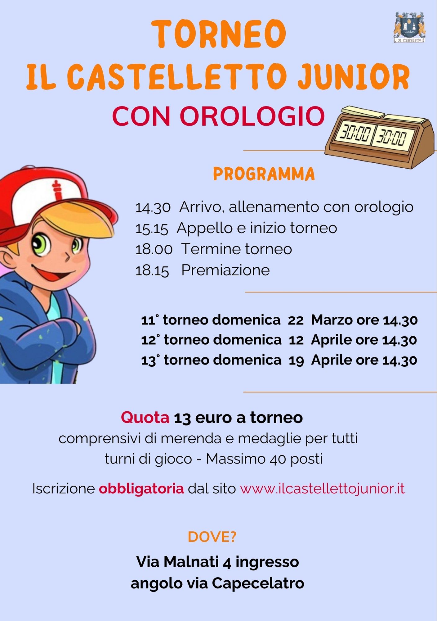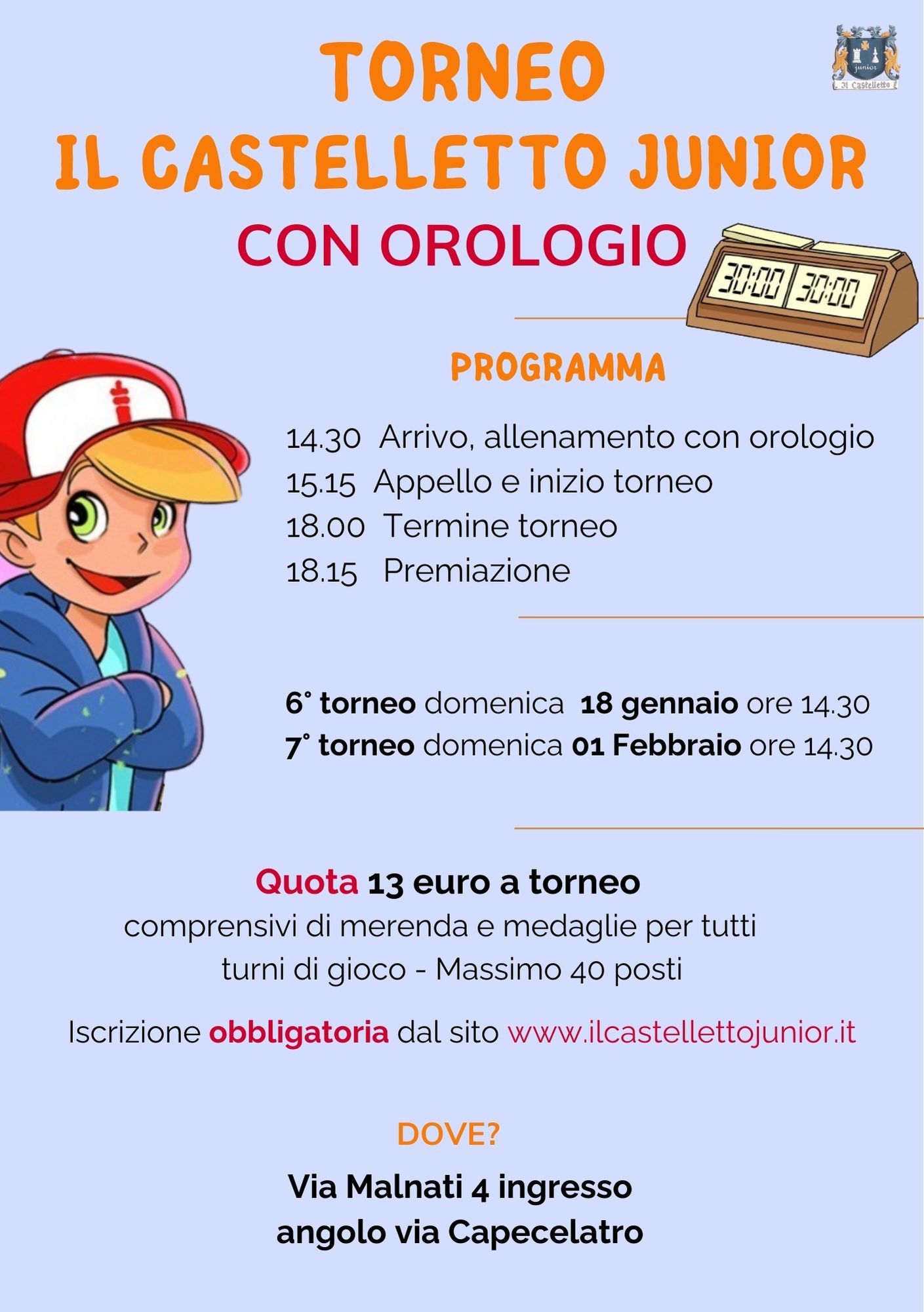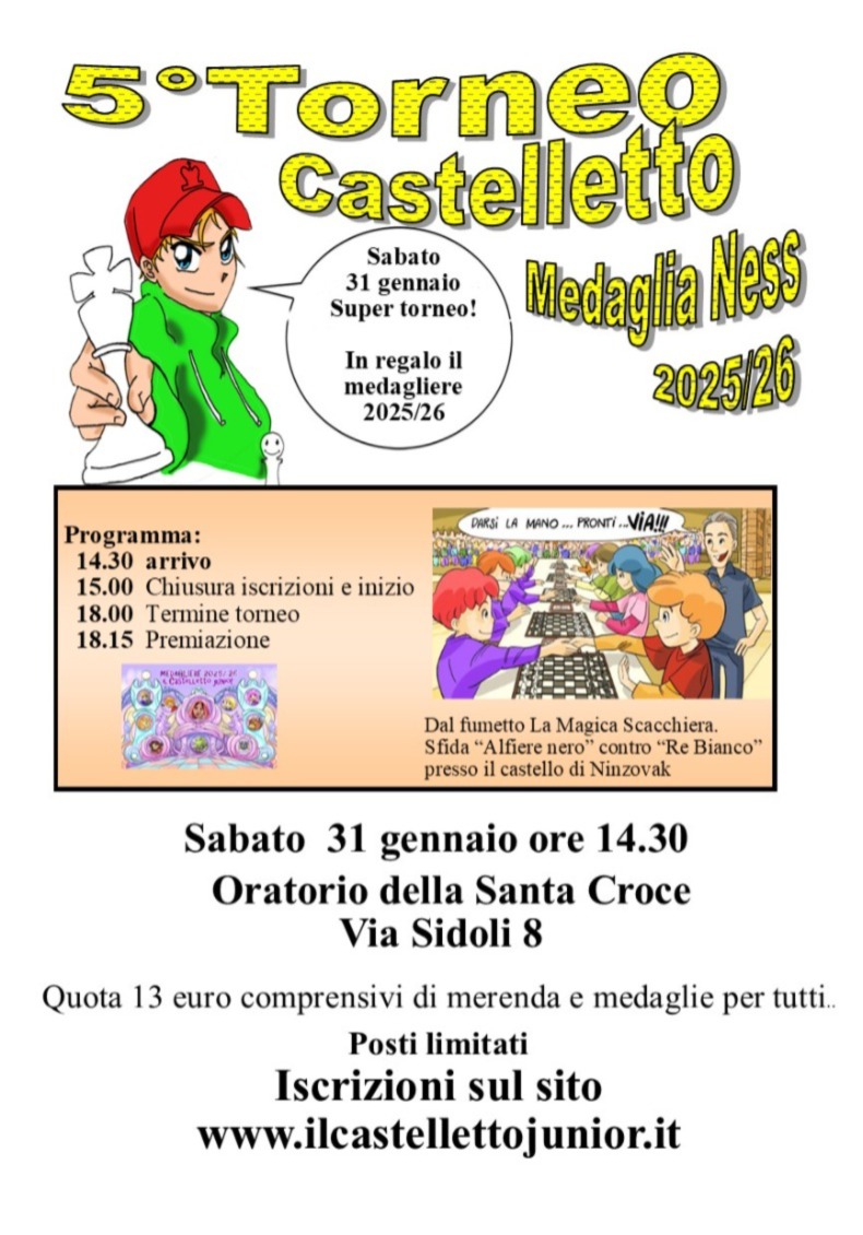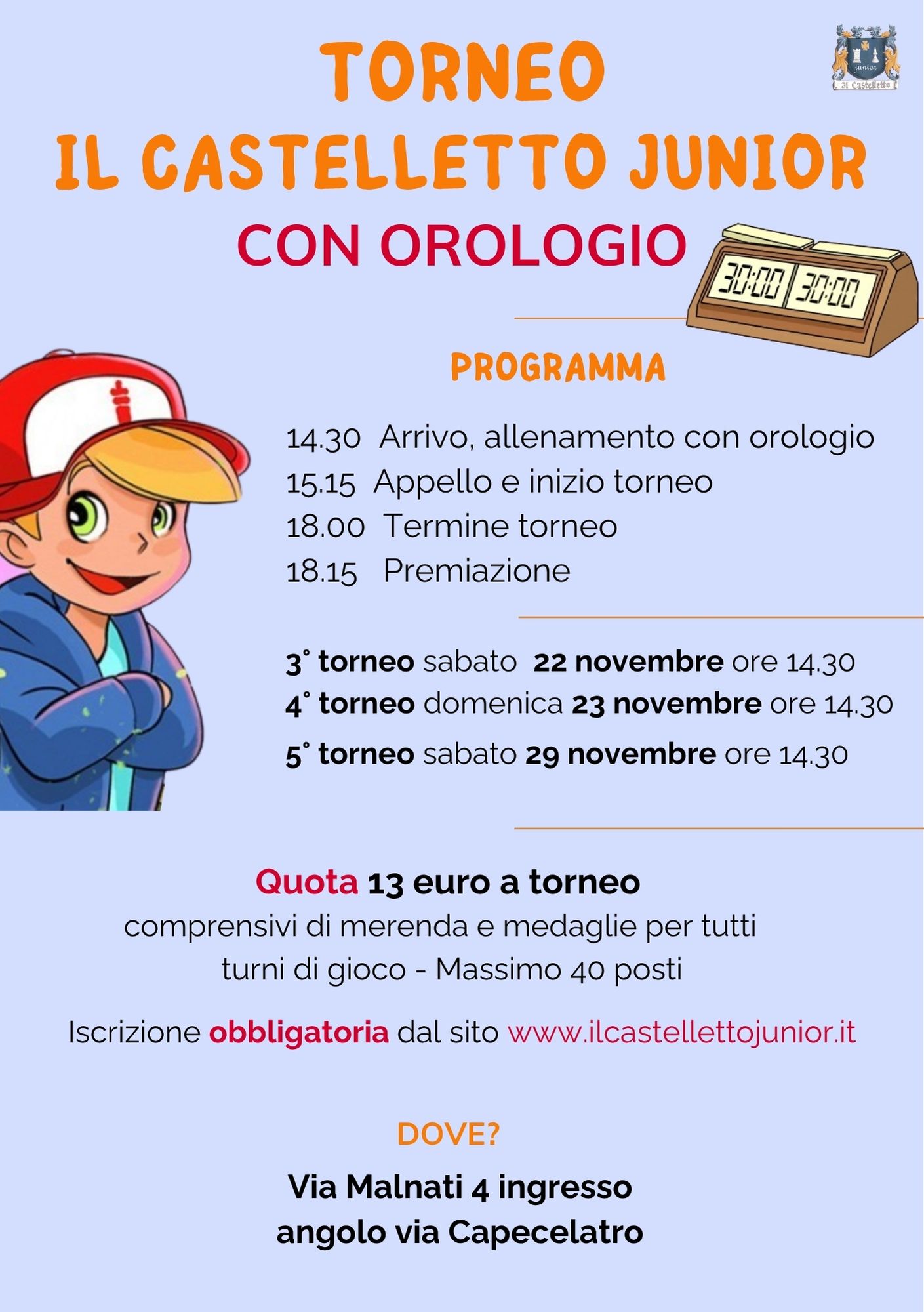 L’ S.S.D Il Castelletto Junior nasce nel 2016 come vivaio dell’A.S.D Il Castelletto, con l’idea di proporre lo sport scacchi soprattutto ai bambini e ai ragazzi, non con finalità agonistiche ma formative, socializzanti e aggregative.
